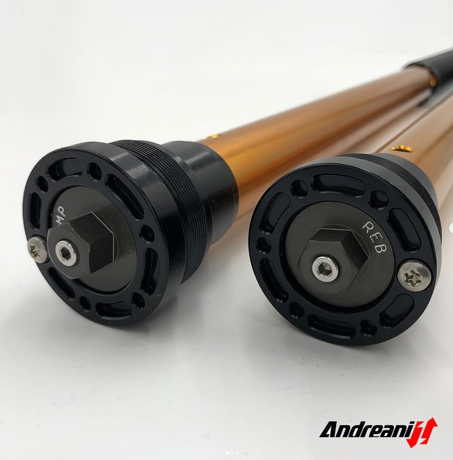 Démontez les ressorts, démontez les pneus VTT, avec l'équipement Andreani qui comprend également de nombreuses clés spéciales pour effectuer les réglages ou monter et démonter les fourches Ohlins, en plus des kits pour toutes les fourches de motos et bien d'autres encore.
