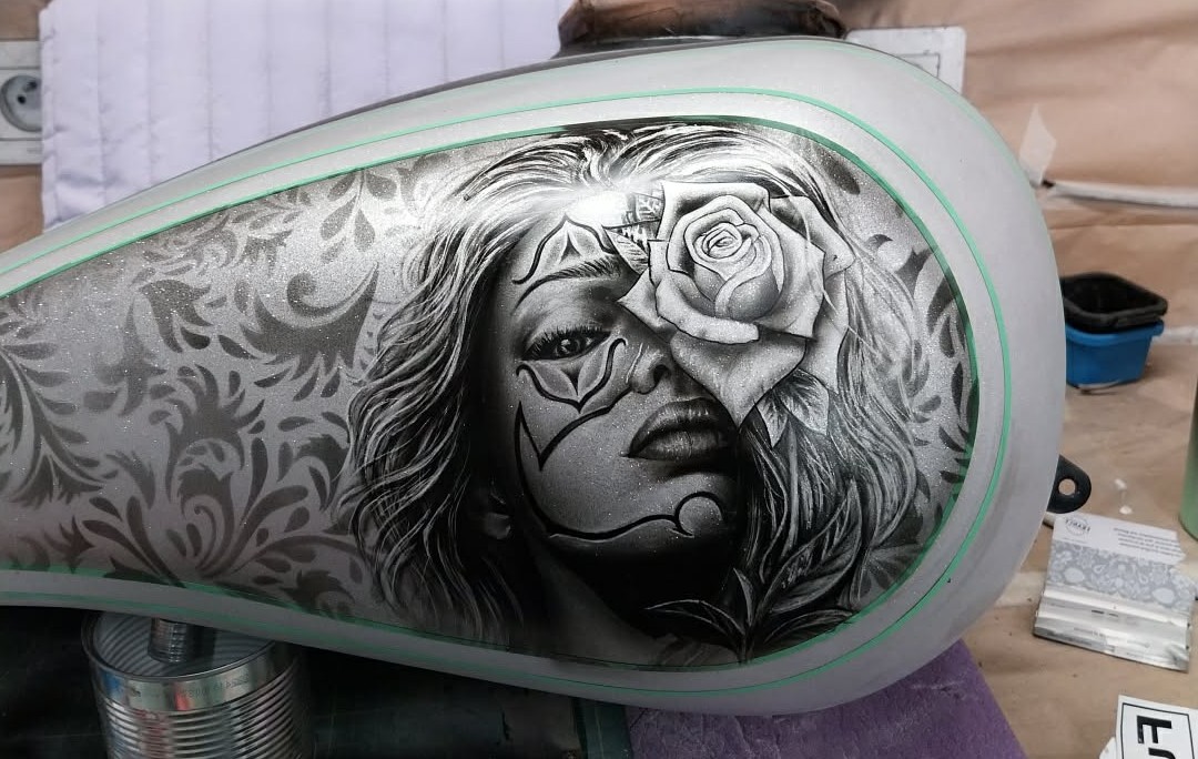 Lady Aero est un atelier de peinture custom spécialisé en aérographie et finitions haut de gamme pour motos, casques et pièces uniques.