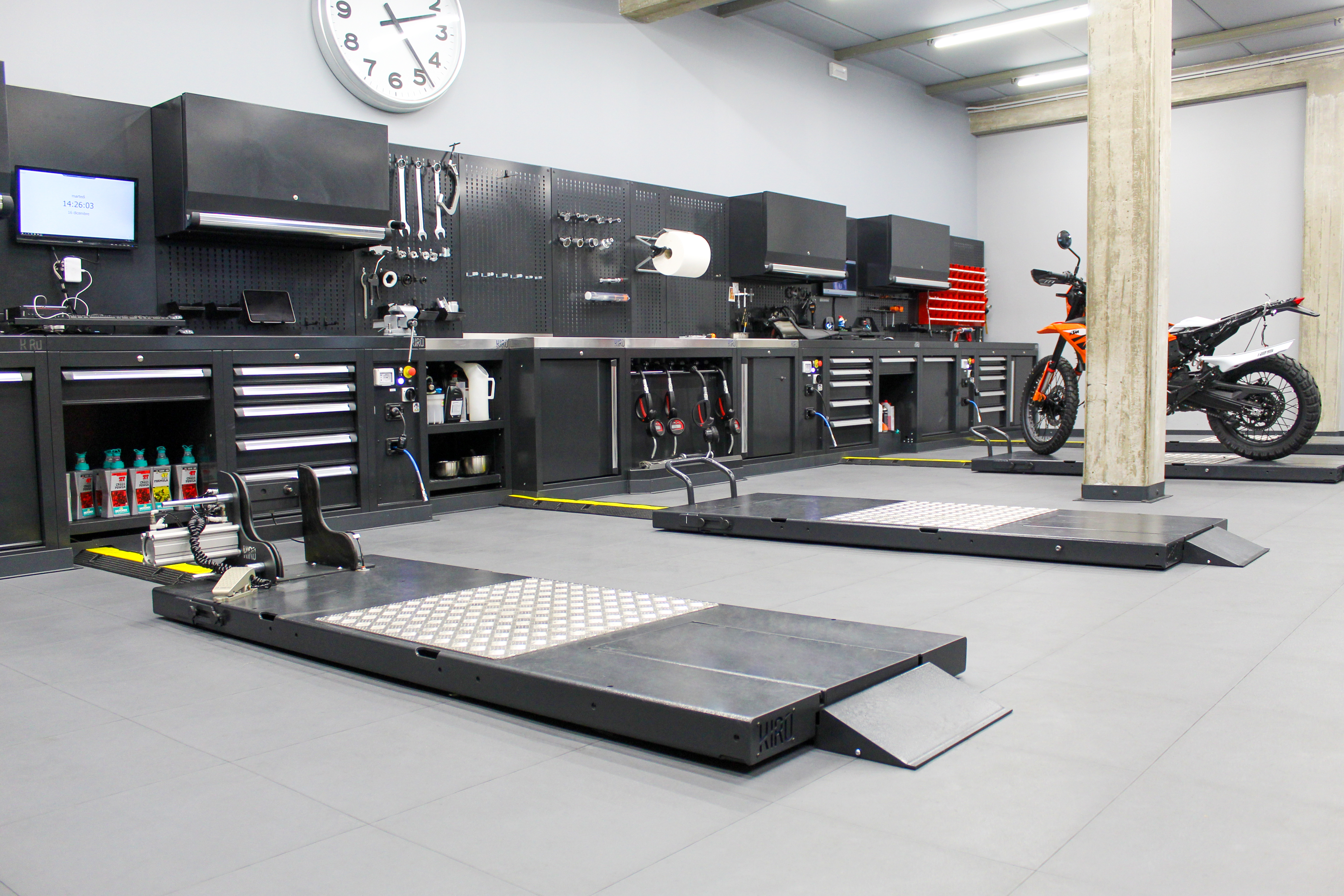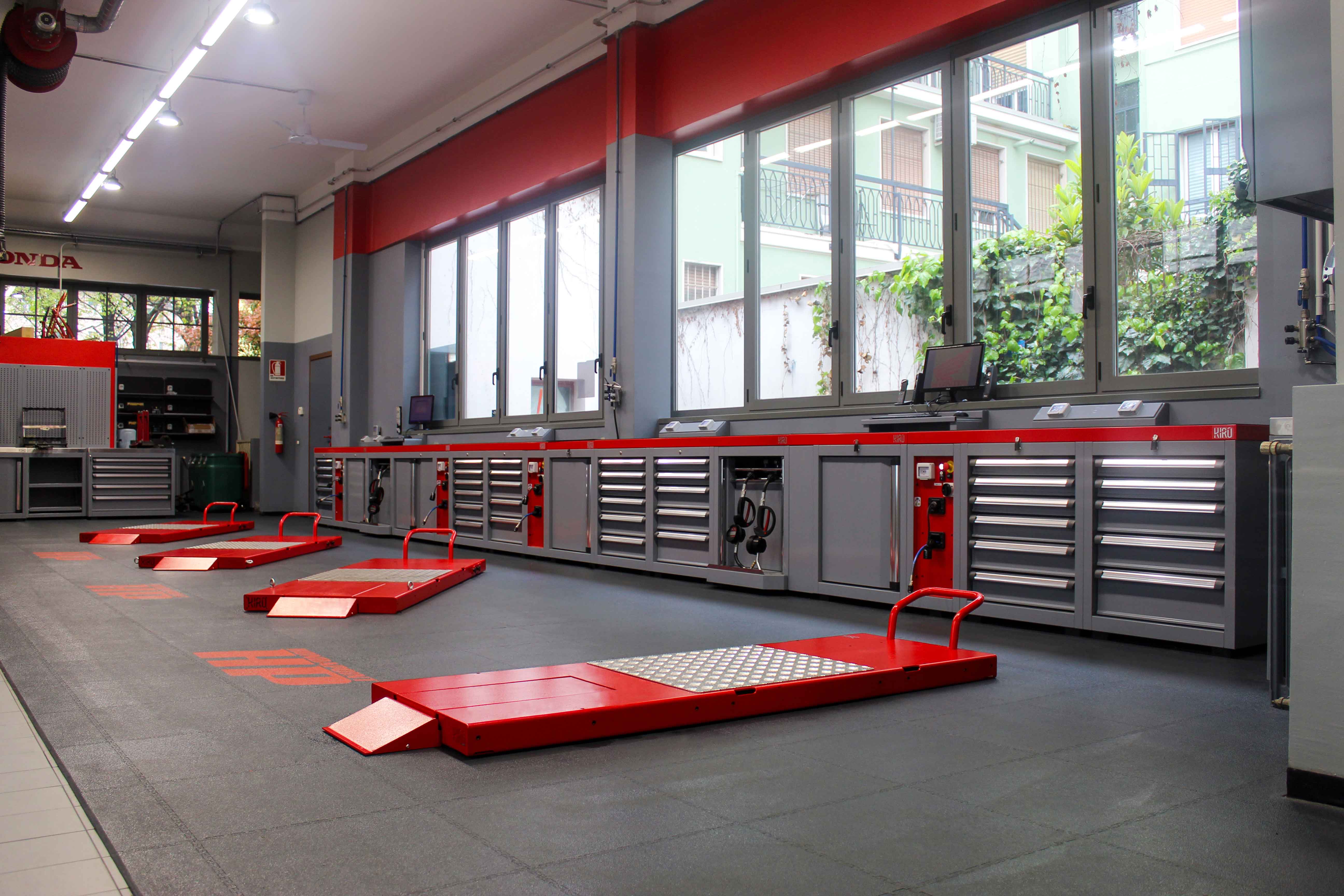 pour concevoir et réaliser des ateliers moto à la pointe de la technologie, conformes aux nouvelles normes toujours plus élevées du secteur motocycliste. KIRO a pris conscience du changement